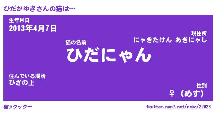 | ポケモン風あだ名 | 『ヒダチュウ』『ヒダカダネ』 |