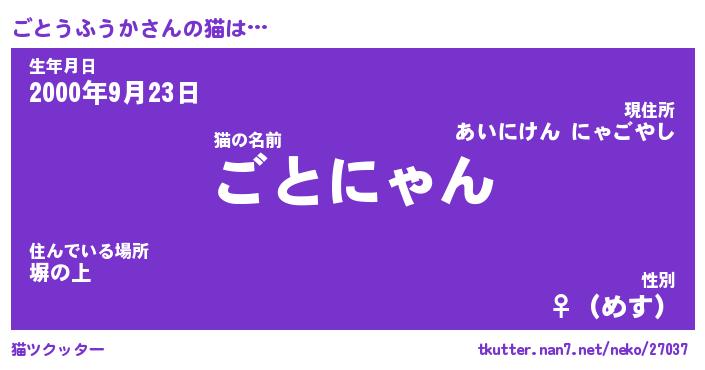 | 自動車の名前っぽいあだ名 | 『プリゴト』『ゴクア』『ゴント』 |