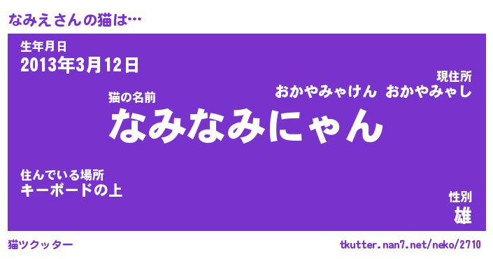 | 2回繰り返すあだ名 | 『なみなみ』『ななみみ』『ぬらぬら』 |