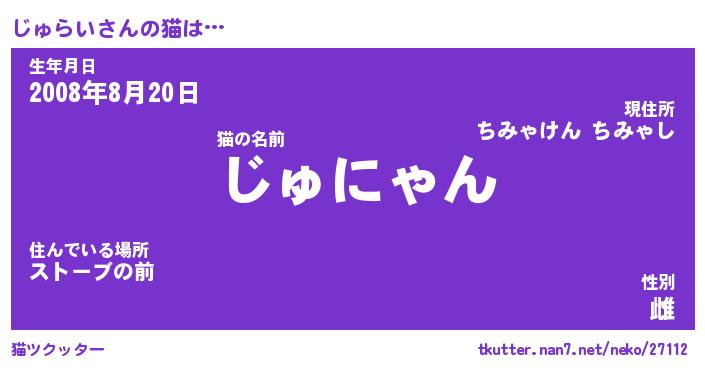| 意味不明あだ名 | 『ペロリンじゅらい』『永久保存じゅらい』 |