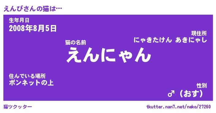 | ポケモン風あだ名 | 『エンチュウ』『エンビダネ』 |