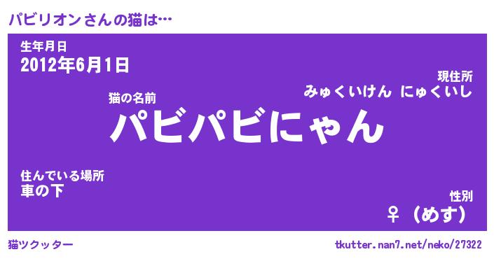 | ヒーロー風カッコイイあだ名 | 『スーパーパビリオン』『魔戒騎士パビ』 |