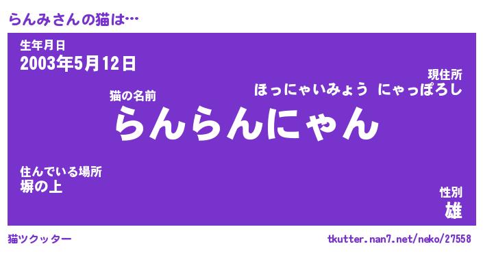 | 2回繰り返すあだ名 | 『らんらん』『ららんん』『かーかー』 |