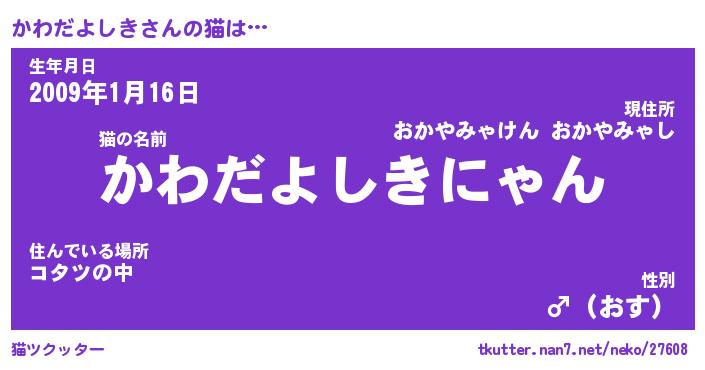| ポケモン風あだ名 | 『カワチュウ』『カワダダネ』 |