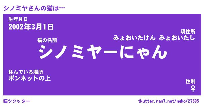 | 意味不明あだ名 | 『ペロリンシノミヤ』『永久保存シノミヤ』 |