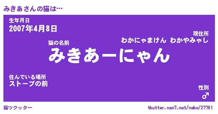 | 意味不明あだ名 | 『ペロリンみきあ』『みきあフォーエバー』 |