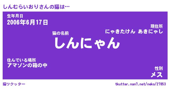 | 男性向けラノベタイトル風あだ名 | 『しんむらいおりの憂鬱』 |