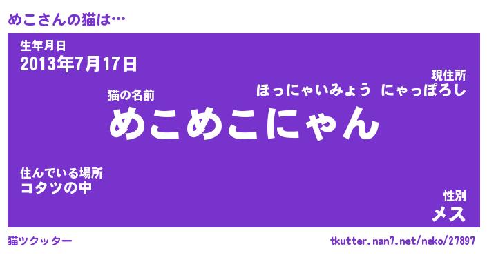 | ツイッター | めこさんのツイッターID『namakemono_man』 |