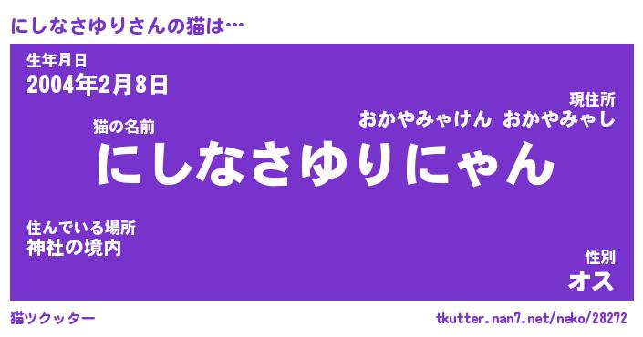 | ポケモン風あだ名 | 『ニシチュウ』『ニシナダネ』 |