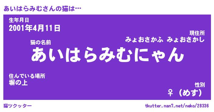 | 男性向けラノベタイトル風あだ名 | 『あいはらみむの憂鬱』 |