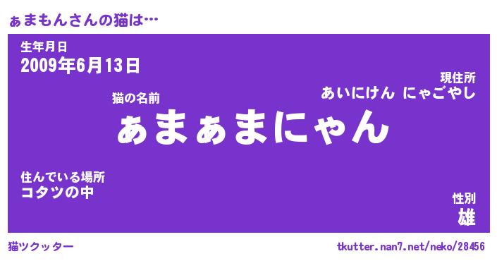 | 意味不明あだ名 | 『ペロリンぁまもん』『永久保存ぁまもん』 |
