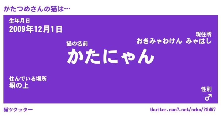 | ファンタジー風あだ名 | 『カタフェル』『エターナルカタツメー』 |
