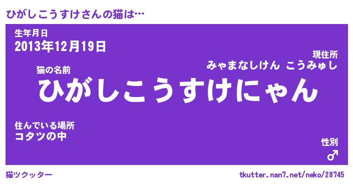 | 男性向けラノベタイトル風あだ名 | 『ひがしこうすけの憂鬱』 |
