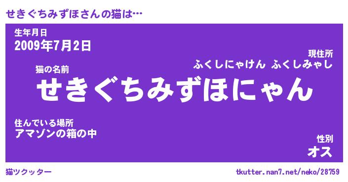 | 女子向けラノベタイトル風あだ名 | 『(仮)せきぐちみずほのやんごとなき事情』 |