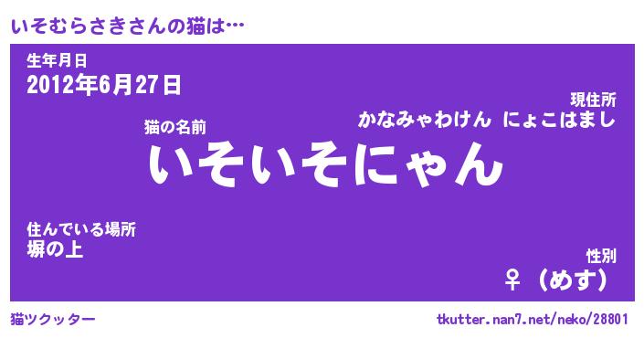 | ヒーロー風カッコイイあだ名 | 『スーパーイソムラサキ』『暗黒騎士イソ』 |