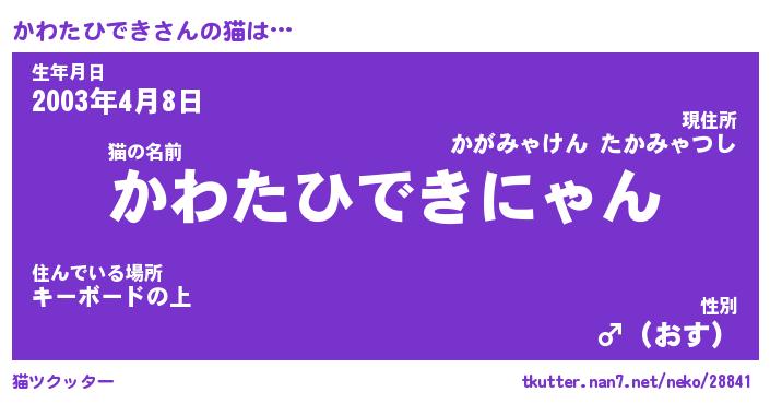 | ポケモン風あだ名 | 『カワチュウ』『カワタダネ』 |