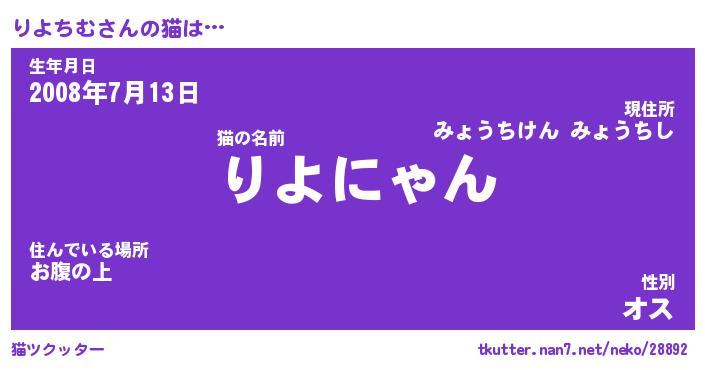 | ヘコむあだ名 | 『りよにー』『なまこ酢』『りよ太郎』 |