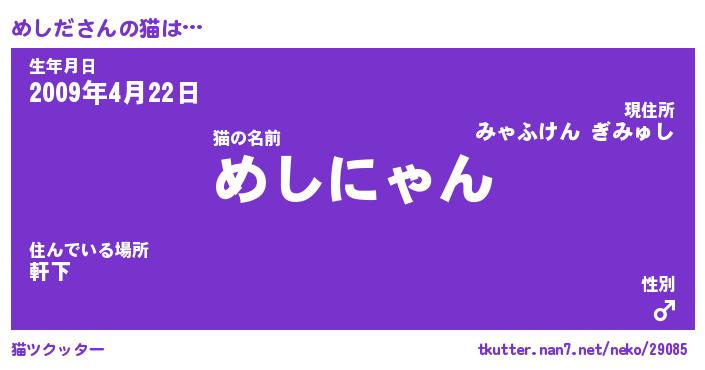 | ポケモン風あだ名 | 『メシチュウ』『メシダダネ』 |
