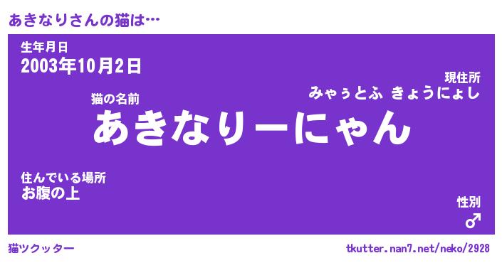 | 生年月日? …「くろねこ」 | 8月01日 10:16 |