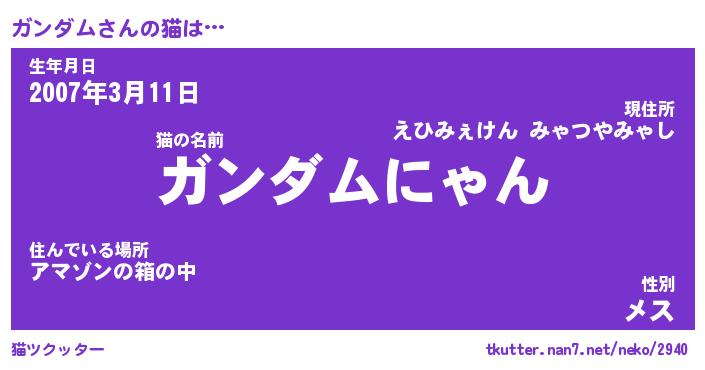 | 意味不明あだ名 | 『ペロリンガンダム』『永久保存ガンダム』 |