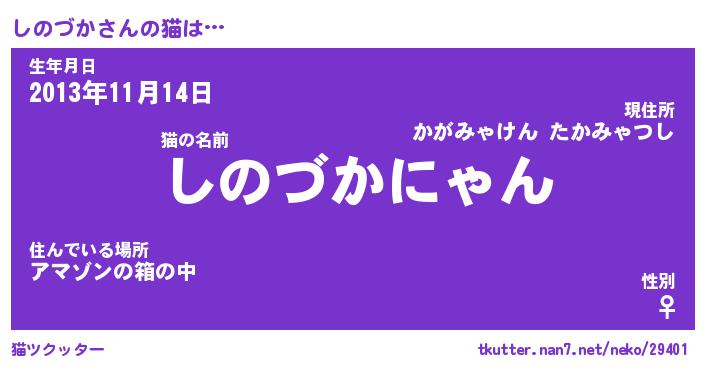 | ファンタジー風あだ名 | 『シノフェル』『エターナルシノヅカー』 |