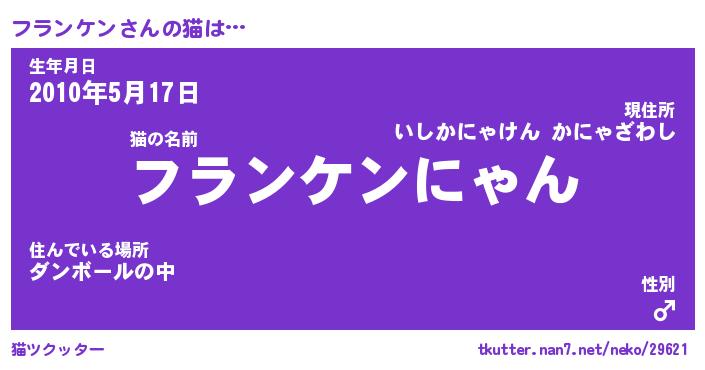 | 男性向けラノベタイトル風あだ名 | 『フランケンの憂鬱』 |