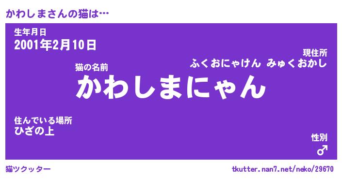 | ファンタジー風あだ名 | 『カワフェル』『エターナルカワシマー』 |