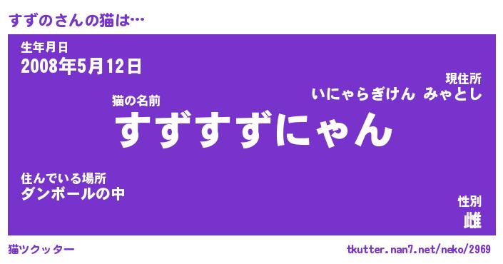 | ヘコむあだ名 | 『すずにゅー』『なまこ酢』『すずを』 |