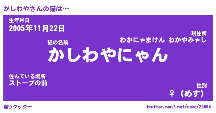 | ファンタジー風あだ名 | 『カシフェル』『エターナルカシワヤー』 |