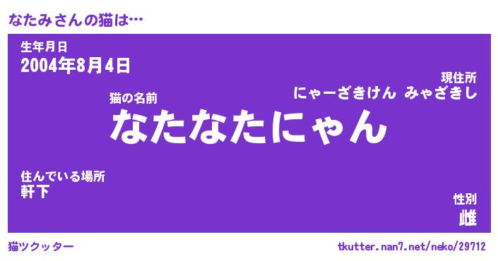 | 2回繰り返すあだ名 | 『なたなた』『ななたた』『ぬらぬら』 |