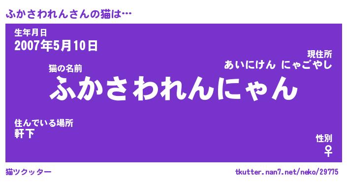| 女子向けラノベタイトル風あだ名 | 『(仮)ふかさわれんのやんごとなき事情』 |