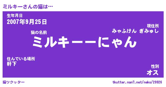 | ヘコむあだ名 | 『ミルにー』『なまこ酢』『ミルを』 |