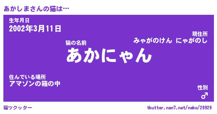 | 意味不明あだ名 | 『ペロリンあかしま』『永久保存あかしま』 |