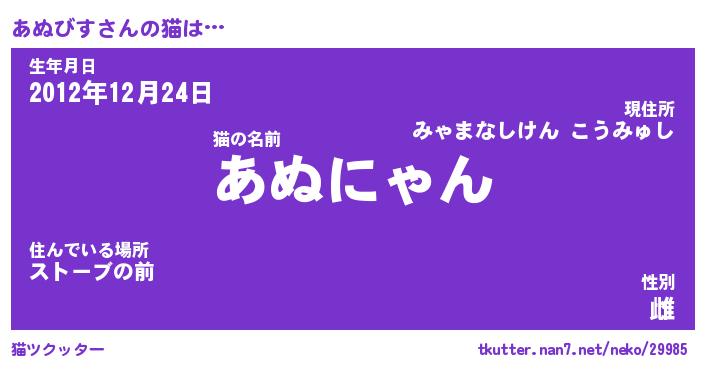 | ポケモン風あだ名 | 『アヌチュウ』『アヌビダネ』 |