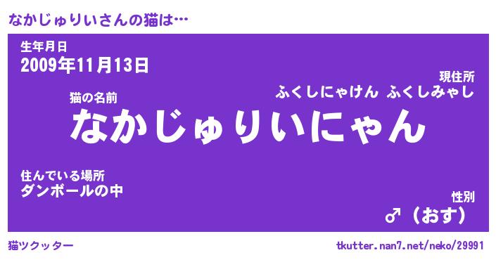 | 男性向けラノベタイトル風あだ名 | 『なかじゅりいの憂鬱』 |