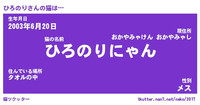 | 生年月日? …「くろねこ」 | 8月01日 10:16 |
