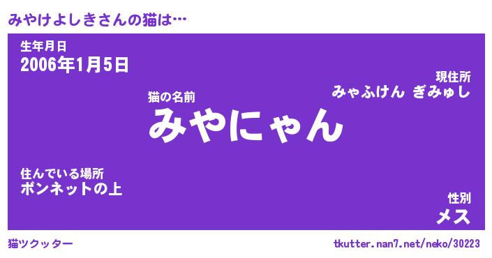 | ポケモン風あだ名 | 『ミヤチュウ』『ミヤケダネ』 |