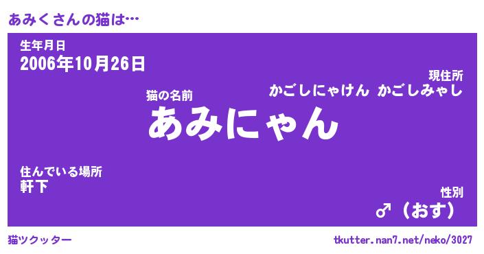| ポケモン風あだ名 | 『アミチュウ』『アミクダネ』 |