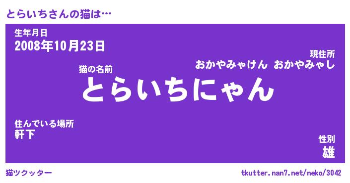 | 意味不明あだ名 | 『ペロリンとらいち』『永久保存とらいち』 |