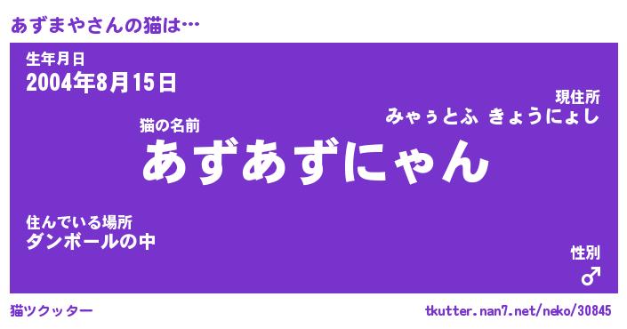 | ツイッター | あずまやさんのツイッターID『namakemono_nyan』 |