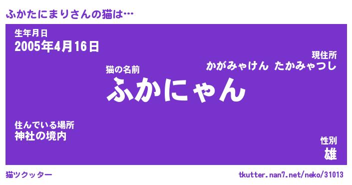 | ポケモン風あだ名 | 『フカチュウ』『フカタダネ』 |