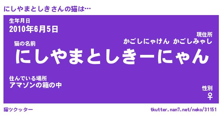| ポケモン風あだ名 | 『ニシチュウ』『ニシヤダネ』 |