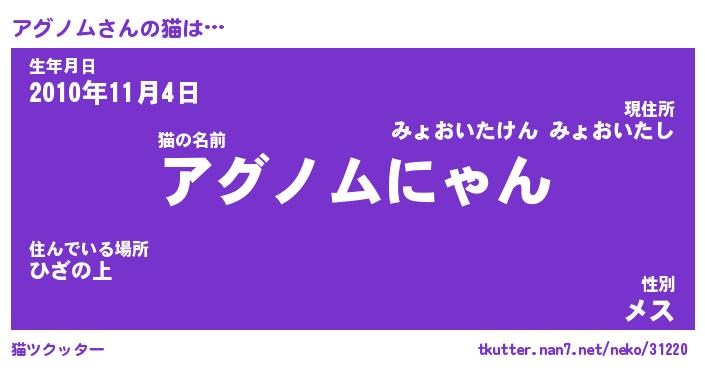 | 意味不明あだ名 | 『ペロリンアグノム』『永久保存アグノム』 |