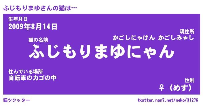 | 女子向けラノベタイトル風あだ名 | 『(仮)ふじもりまゆのやんごとなき事情』 |