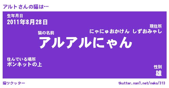 | 意味不明あだ名 | 『ペロリンアルト』『アルトフォーエバー』 |