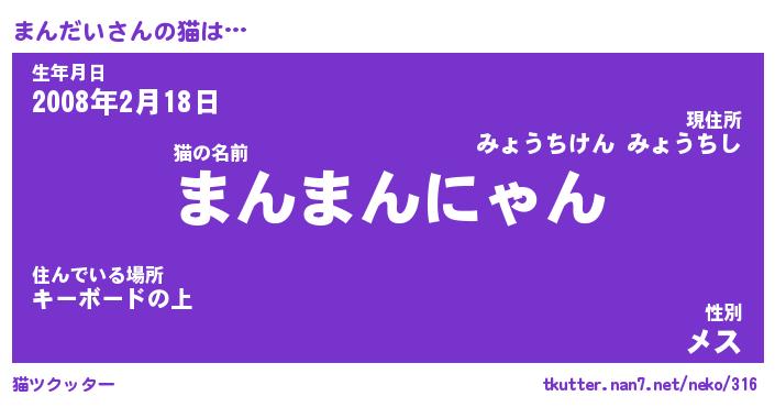 | 2回繰り返すあだ名 | 『まんまん』『ままんん』『ぽそぽそ』 |