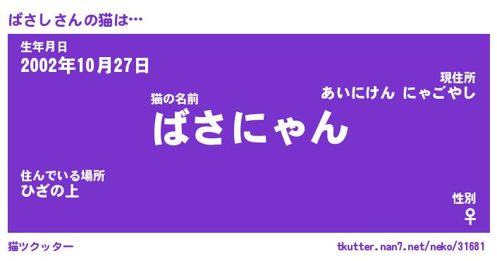 | ポケモン風あだ名 | 『バサチュウ』『バサシダネ』 |
