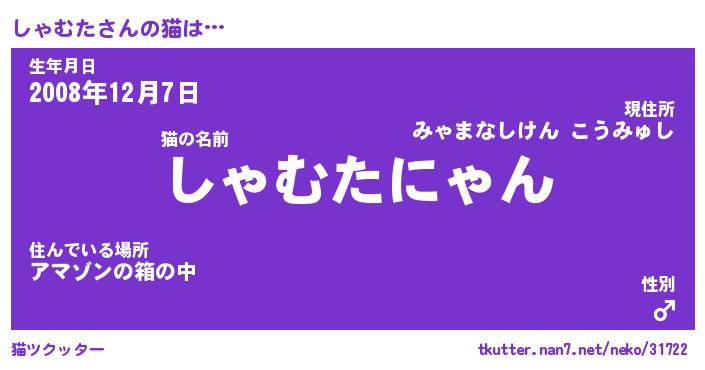| 意味不明あだ名 | 『ペロリンしゃむた』『永久保存しゃむた』 |