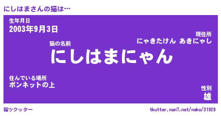 | ポケモン風あだ名 | 『ニシチュウ』『ニシハダネ』 |
