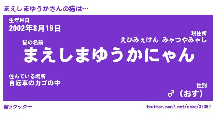 | 恥ずかしいあだ名 | 『プリティーまえしまゆうか』『まえちん』 |